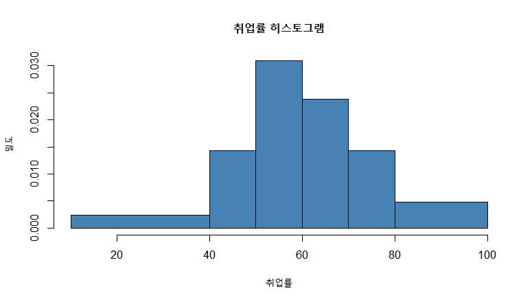 히스토그램은 수치자료 특히 연속형 자료의 분포형태를 표시합니다.
