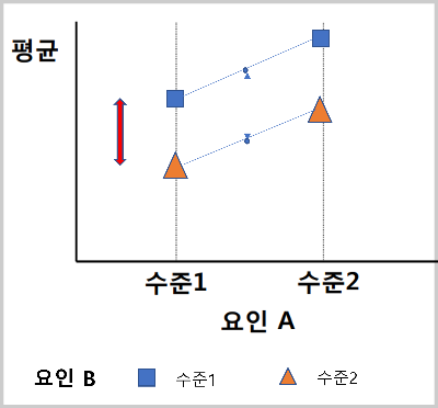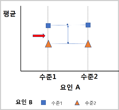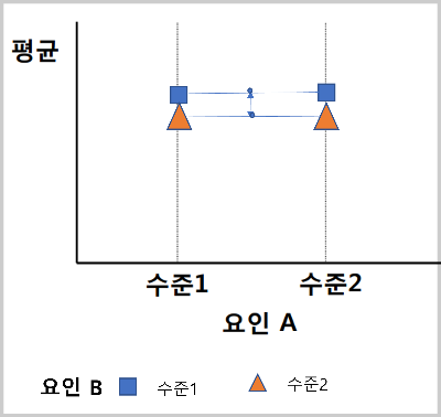 요인A의 수준들의 평균은 차이가 있지만 요인 B의 수준들의 평균은 차이가 없습니다.