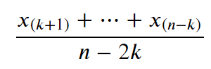 표본평균과 표본중앙값의 장점을 취합해 만듣 것이 표본절사평균입니다.