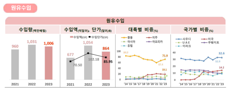 한국석유공사에 따르면 우리나라의 경우 원유 및 석유제품 수입량은 약 10.1억 배럴(2023년 기준)입니다. 수입한 원유는 휘발유나 경유 등으로 정제되어 국내에서 사용합니다. 하지만 석유 제품을 4.9억 배럴이나 수출하고 있습니다. 우리나라는 산유국은 아니지만 석유 제품을 수출하고 있습니다. 이는 우리나라의 석유 정제 기술이 뛰어나기 때문에 가능한 일입니다. 원유의 수입이나 석유제품의 수출에 사용되는 것이 탱커선입니다.