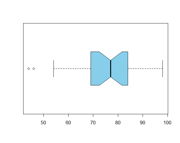 1분위수 : 69 , 3분위수 : 84