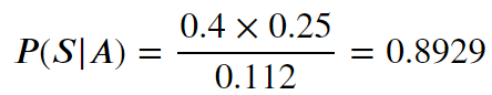 A 라는 단어가 있을 때를 사건 A 라 하면, 스펨메일 중 25%는 A를 포함하는 것은, P(A|S) = 0.25