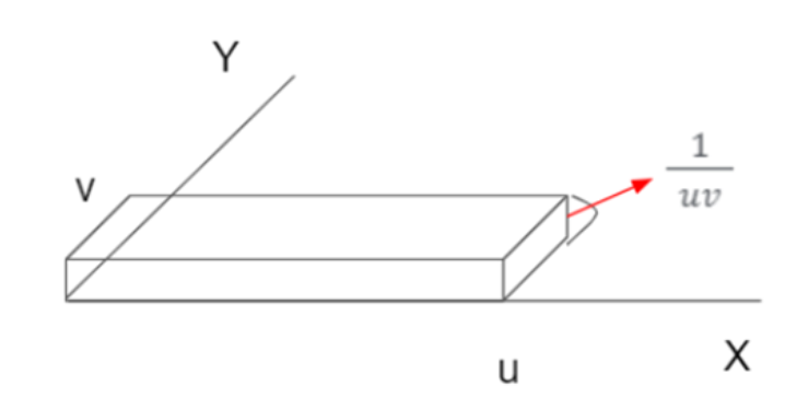 균일분포 (X,Y) ~ U ( (0,u), (0,v)) 의 결합확률밀도함수는,