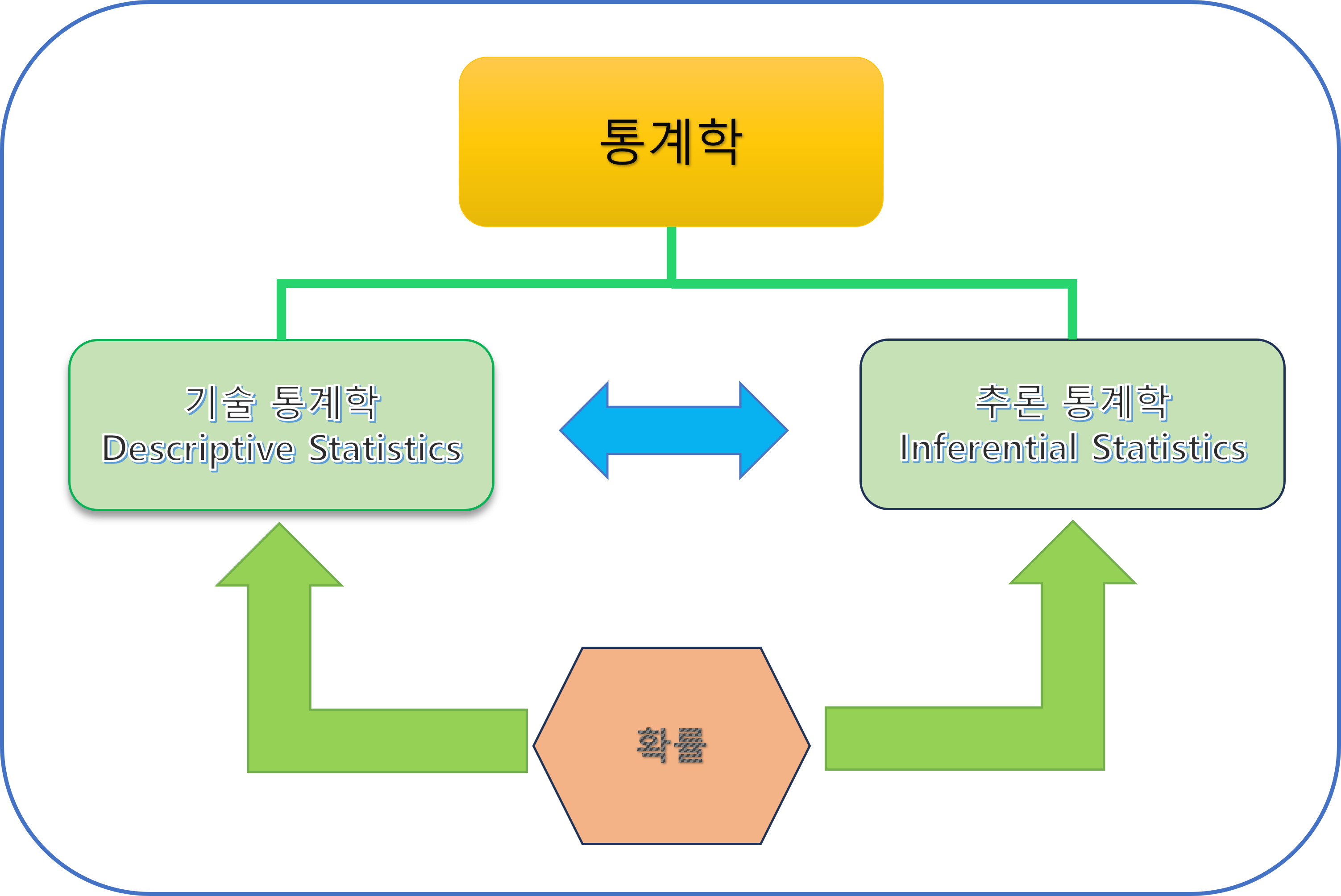 통계학의 개요에서 아래의 그림으로 통계학을 표현하였습니다.
