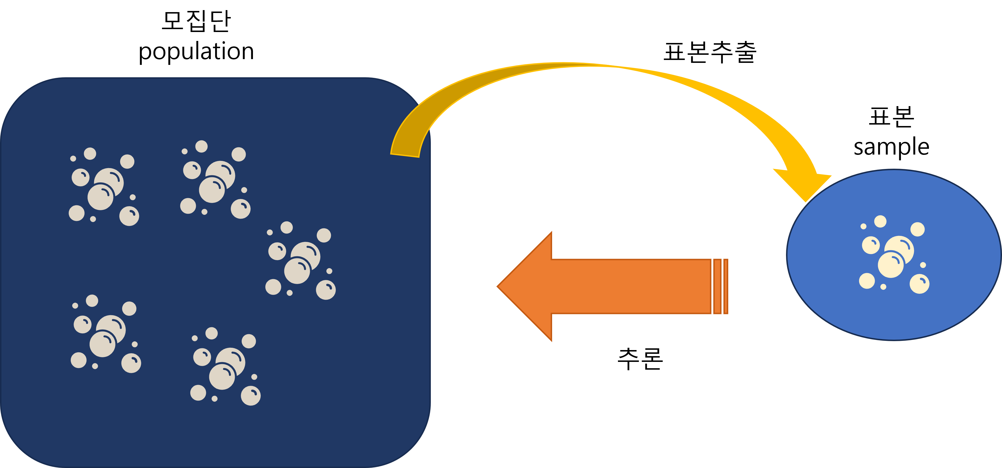 통계적 추론 혹은 추론 통계학은 표본으로부터 모집단이 무엇인지를 추론하는 것이라 할 수 있습니다.