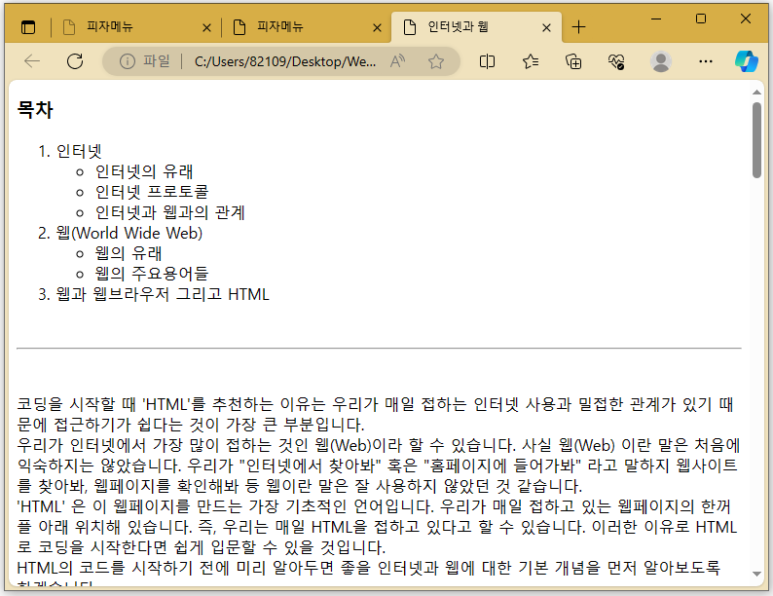 <li>웹과 웹브라우저 그리고 HTML </li>