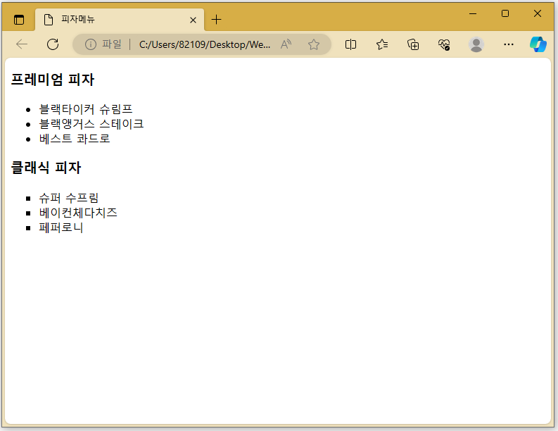 <title>피자메뉴</title>