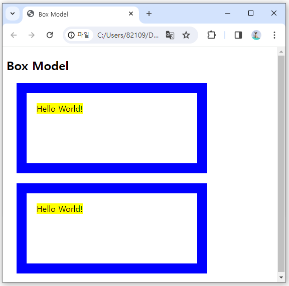 박스모델이란 모든 HTML 요소는 상자(Box) 형태로 나타낼 수 있다는 개념입니다.