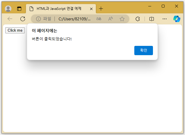 아래는 버튼을 클릭했을 때 JavaScript 함수를 실행하는 예시 코드입니다.